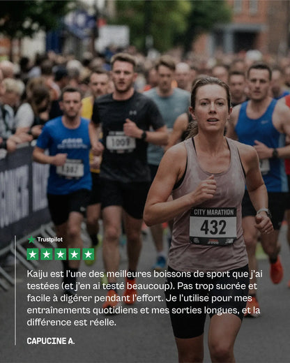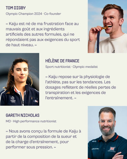 “En tant que sprinteur et ingénieur, je veux des produits qui tiennent leurs promesses.Kaiju m'accompagne sur mon hydratation : des électrolytes bien dosés et pas de superflu. Mieux récupérer tout restant en phase avec mes valeurs.”