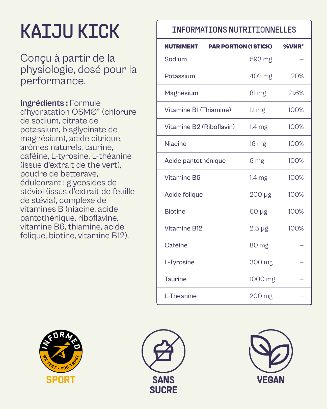 Kaiju réussit là où la plupart des boissons échouent : des ingrédients propres, efficaces, et vraiment utiles.C’est ce que je recommande aux athlètes d’élite comme à ceux du quotidien.