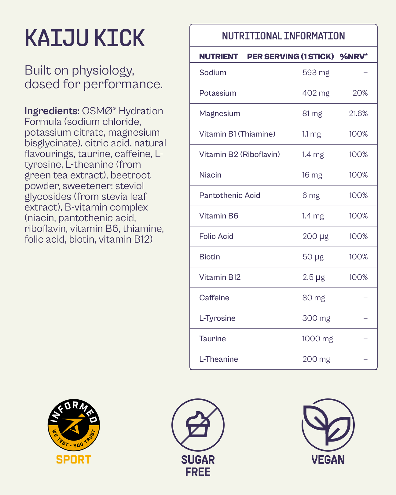Athletes need fuel they can trust. Kaiju keeps it simple—clean electrolytes, natural ingredients, and evidence-based formulas that deliver when performance matters most.