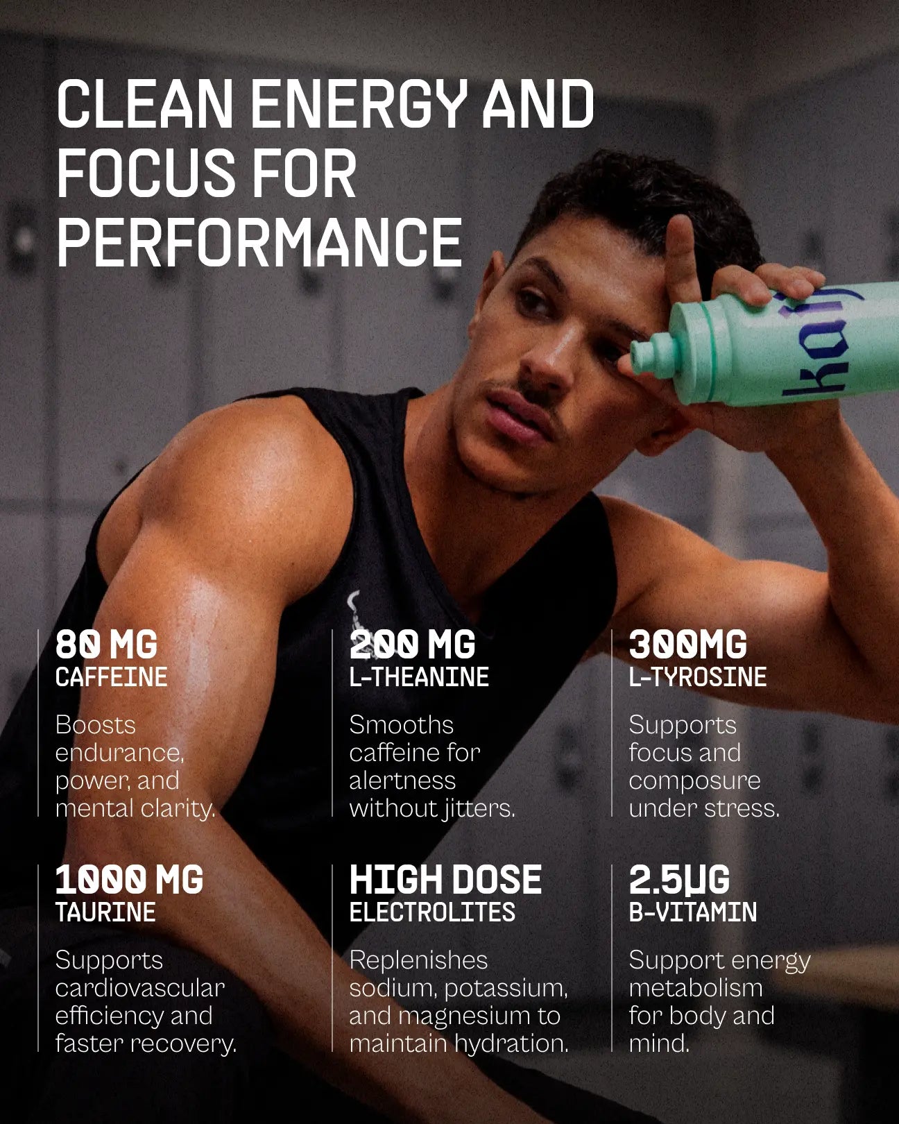 Sip before, during, or after training to fuel, hydrate, and recover.